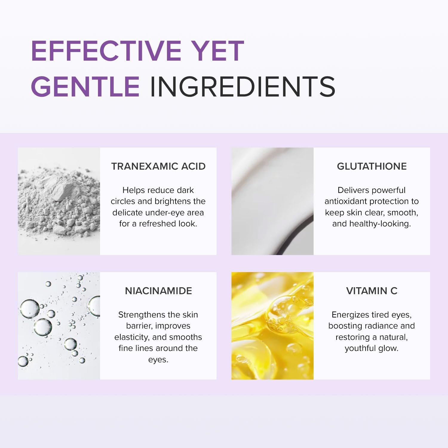 What is it: A brightening eye cream infused with Glutathione and Tranexamic Acid to reduce dark circles, improve dullness, and restore a radiant, even-toned eye area.