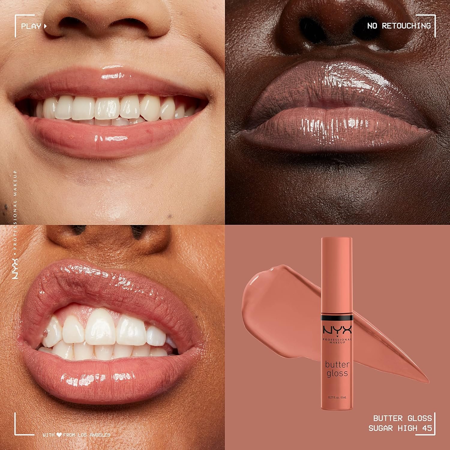 Gloss your lips to perfection with NYX Professional Makeup Butter Gloss. This fan-fave lip gloss provides non-sticky shine that can be worn anywhere, anytime. Choose from one of 29 sheer-to-medium coverage shades for a pop of gorgeous color and high shine, or opt for the untinted version for clear, glossy goodness. The universally-flattering gloss can even be layered on top of your other lip makeup favorites for a high-shine finish. The ultimate versatile staple in our lineup, Butter Gloss has become America’s #1 lip gloss.