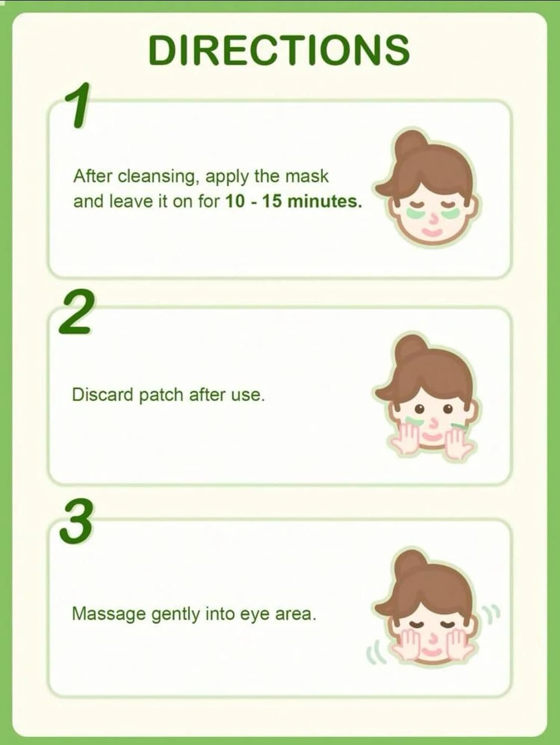 - Intensive Hydration: These moisture patches are designed to deliver intense hydration to the delicate skin under your eyes, keeping it moisturized and supple throughout the day.