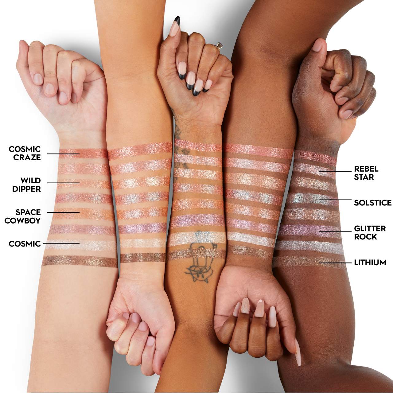 - Urban Decay – 24/7 Moondust Eyeshadow – Space Cowboy – light champagne gold with silver sparkle